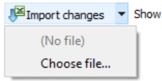 If you click the little black arrow on the right-hand side of the button, Streamline shows you a two-line menu. The first option imports the file you have created using the Export Report button. Streamline shows the (No file) label if no file was created previously. The second option, ‘Choose file…’, allows you to import changes from any other file with a compatible format (see figure below).
