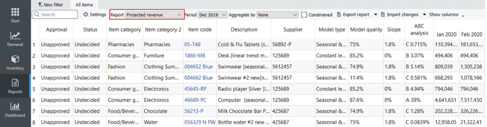 Still, there is an option to forecast demand based on the revenue, which has been formed in the external data source. Users can import it and Streamline will take it into account while generating the forecasts.