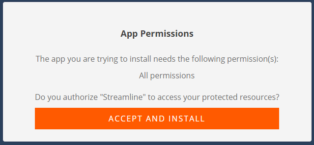 2. Grant Streamline access to your data by clicking the Accept and Install button (see figure below).
