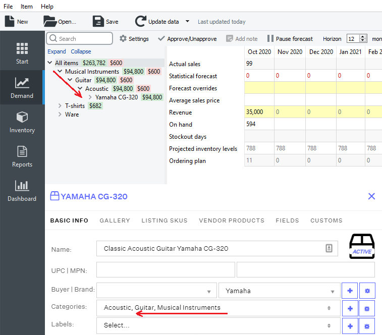 Now, Skubana sorts categories just we want them to be ordered. The result of import is shown in the figure below.