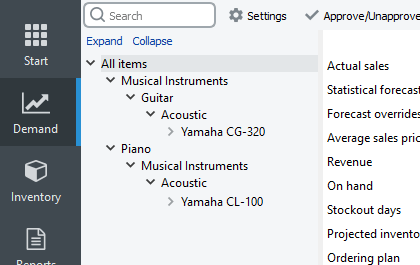 As you see, Skubana sorts categories in alphabetical order from A to Z. Thus, if we import these products in Streamline, we will get the data hierarchy depicted in the figure below.
