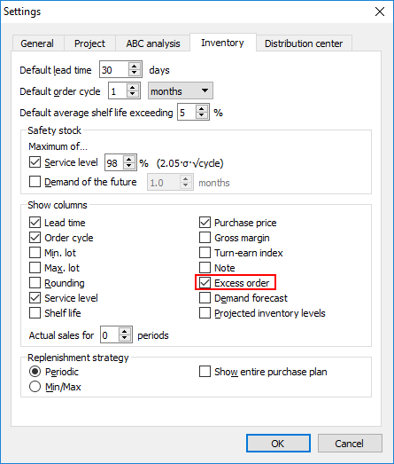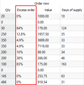 Now, the Order now section includes the Excess order column (see figure below).